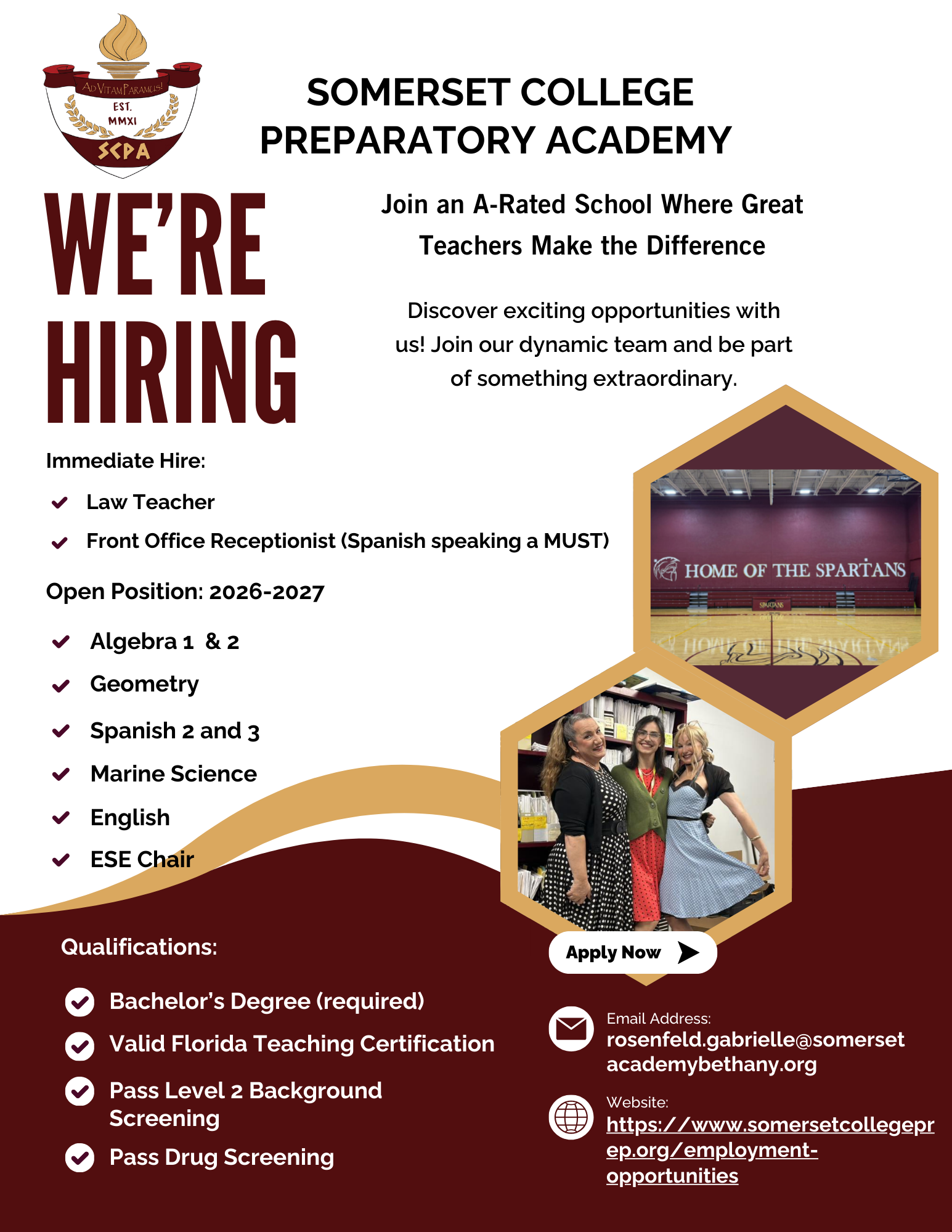We are seeking dedicated professionals who are ready to make a meaningful impact in the lives of our students and grow within a positive, high-performing school community.